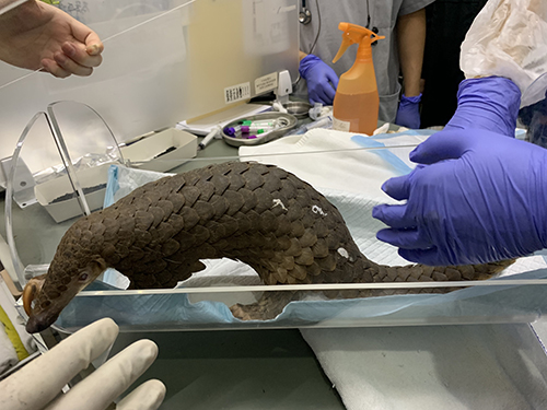 穿山甲“沒動(dòng)”正在做CT檢查。受訪者供圖